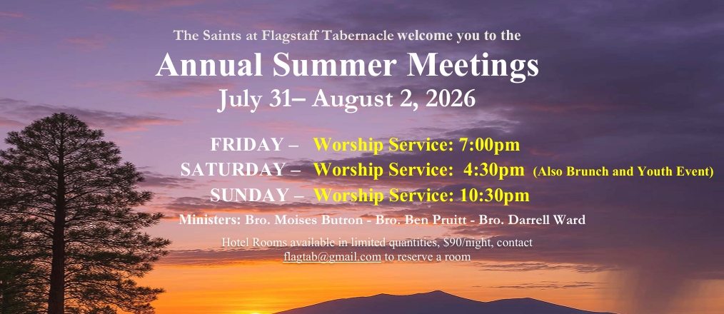 Flagstaff Mission Tabernacle is a little church with a steadfast faith and solitary hope in the Lord Jesus Christ. In the 50 years that we have opened our doors we have always tried to be welcoming and loving to any person who desires to worship with us. We yearn to see people accept Jesus as their Lord and savior and to recognize the message that He has sent to his bride in this day and age.