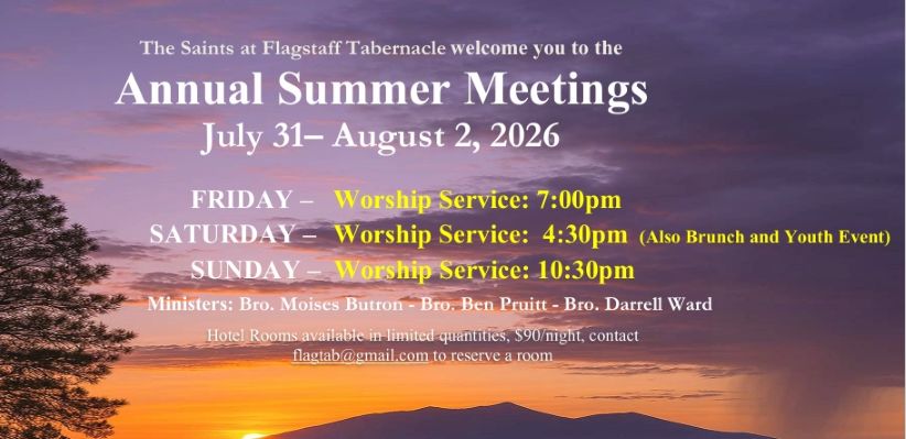Flagstaff Mission Tabernacle es una pequeña iglesia con una fe firme y una esperanza singular en el Señor Jesucristo. En los 50 años que hemos abierto nuestras puertas, siempre hemos procurado ser acogedores y amorosos con toda persona que desee adorar con nosotros. Anhelamos ver a las personas aceptar a Jesús como su Señor y Salvador, y reconocer el mensaje que Él ha enviado a Su Novia en este tiempo.